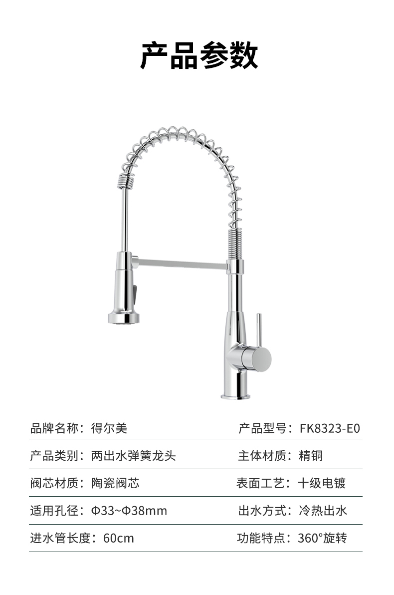 FK8323-E0 廚房彈簧抽拉龍頭